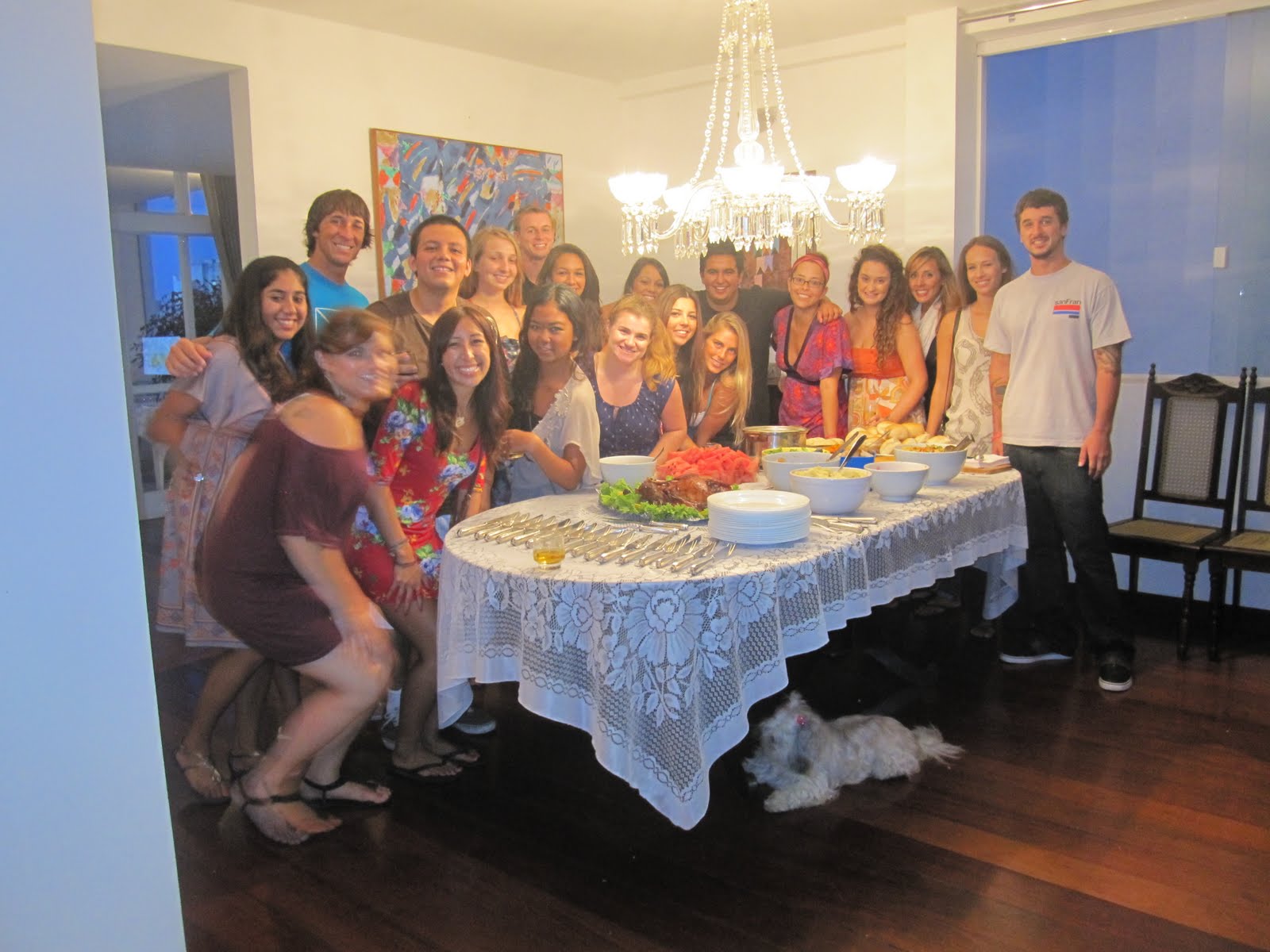 Happy Thanksgiving everyone! Its thanksgiving here in Brazil as well but just 5 hours earlier! Its okay when i was done with dinner and dessert, my family in the states was just getting ready. The first thanksgiving without my family, but with all my new and wonderful friends in my program. So we decided that we really wanted to have the holiday for us still, because it is a American holiday (even though it has many flaws pertaining to the indigenous tribes of north American) we Americans wanted to celebrate it as we do at home. So even thought we lacked many ingredients that we have access to in the states, we did what we could and made it work.